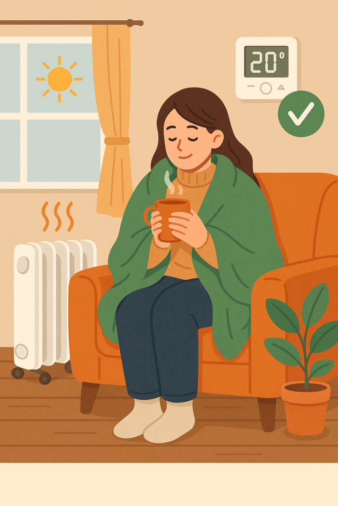 난방 온도를 1도만 낮춰도 약 7% 절전 효과가 있습니다. 온풍기 대신 전기장판, 무릎담요, 실내 슬리퍼를 활용하세요. 👉 “따뜻하게 입는 습관 = 요금 절감 습관”이에요.
